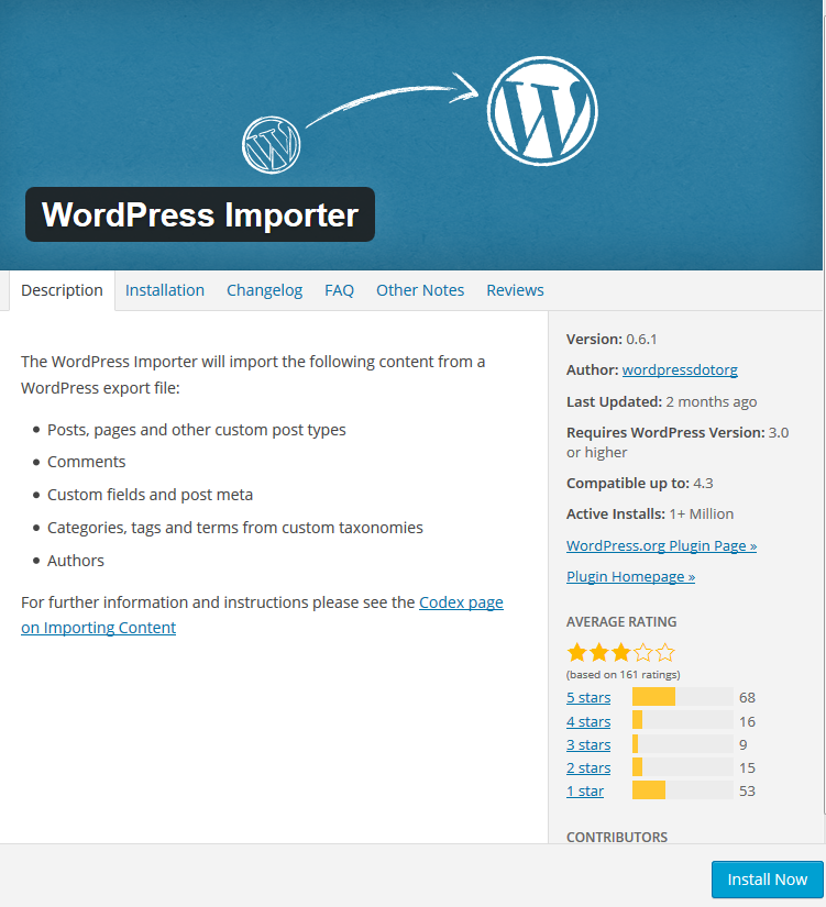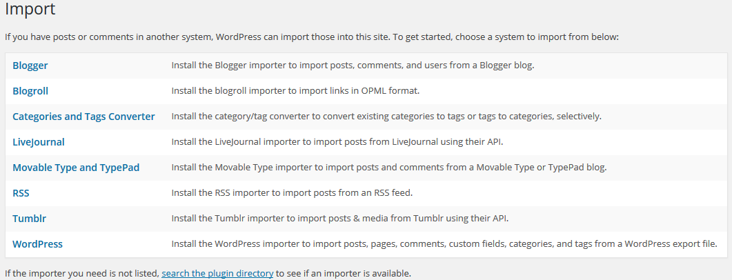 Please install the Wordpres Import plugin.